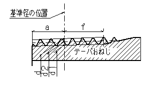 | References: "JIS Handbook 2002 (4-1) Screw I Terms / Expression / Drafting / Basic / Limit Gauge / Common to Parts" (Japanese Standards Association) Tapered Thread for Pipes Page 90 Appendix 1 Standard chevron, standard dimensions and dimensions Quoted from tolerance. | ||||||||||||