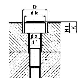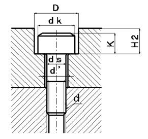 | Nominal screw (d) | ds | d' | dk | D | K | H1 | H2 |