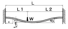 I max(x=L1) =1/2*W*L12*L22*(L2-L1)*180/(E*I*L3*π)