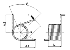 ばねの自由角度(圧力Fの作用しない角度)は、取り付け角度にねじれ角(φ)を加えた角度に